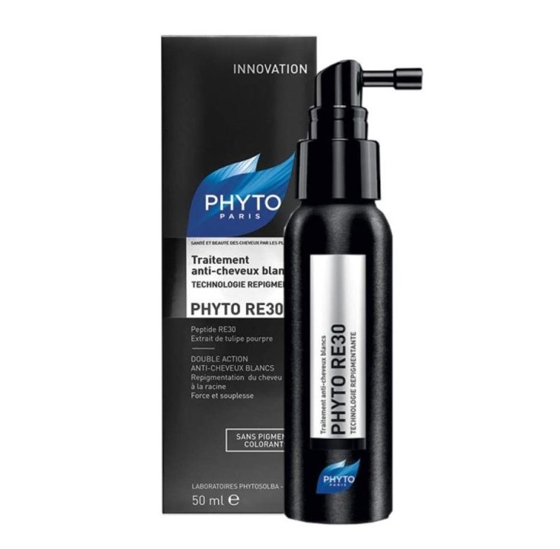اسپری رفع سفیدی مو فیتو RE30 یک محلول رفع سفیدی مو برای موهای خاکستری و سفید است. این محصول نتیجه 6 سال مطالعه و تخقیق برند فرانسوی فیتو است. سفید و خاکستری شدن موها بعد از دهه 40 نرمال است اما سفیدی در دهه 20 و 30 سالگی استرس زا است.